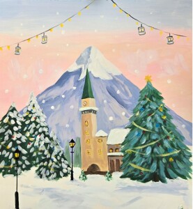 Join us for a night of painting and a little sipping. You will paint under the direction of Kate Franklin as she will help you create a beautiful Vermont winter themed painting to take home and hang. Sip on wine or one of our non alcoholic beverages, plus an available cash bar for any additional drink purchases. We kindly ask that you check-in at the Information Desk in the main base lodge 15 minutes prior to class starting.